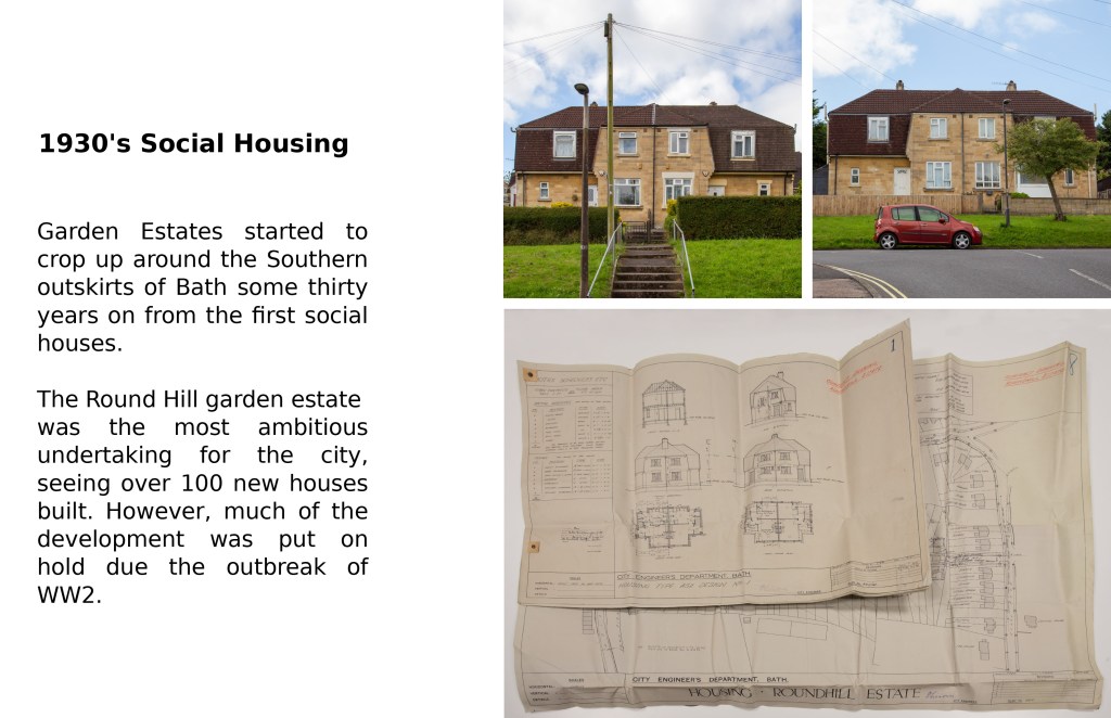 The project by Tim Beale goes some way to readdressing this imbalance. His work using the medium of photography provides an interesting overview of social housing construction and styles in Bath. When you read his work, it brings provides a very different picture of Bath life, no glamour, no high fashion and no historical “white” wash.